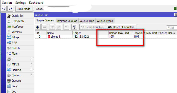 5 Opcional: Podemos limitar la velocidad desde Mikrotik