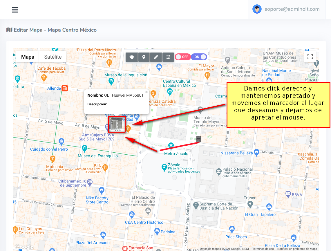 Una vez que demos click en el segundo marcador, nos saldrá una ventana donde tendremos que poner la información acerca del cable, después damos click en Si, estoy seguro.