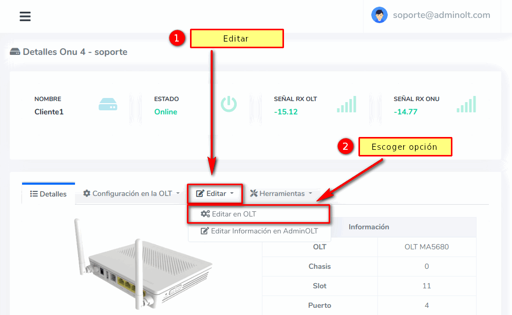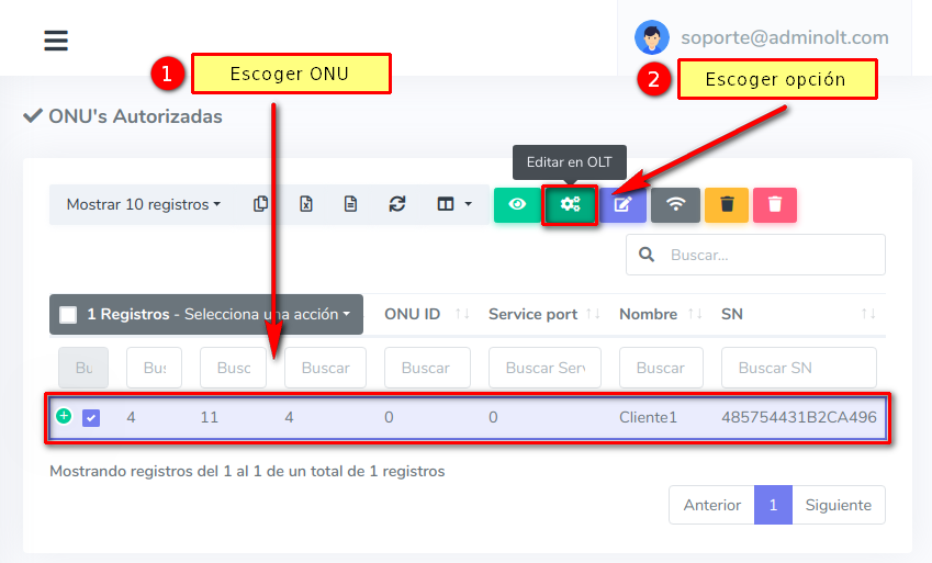 Para editar el Puerto de una ONU en la OLT existen 2 formas de hacerlo: