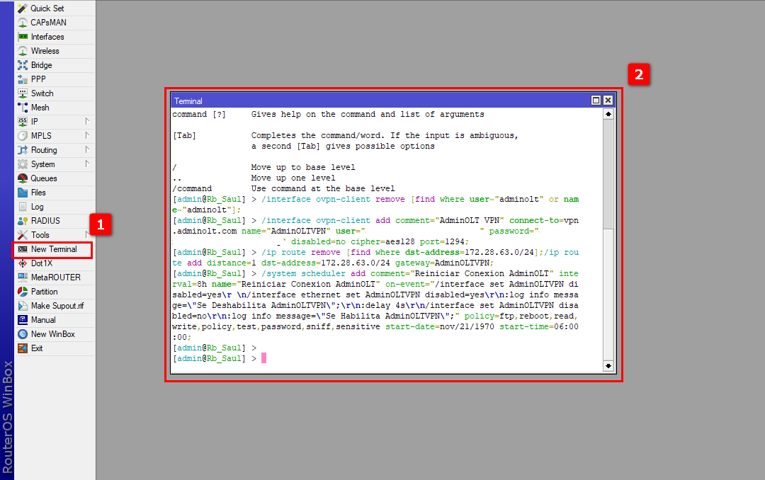 5Pegamos en la terminal de su Routerboard el script que copiamos y verificamos la conexion.
