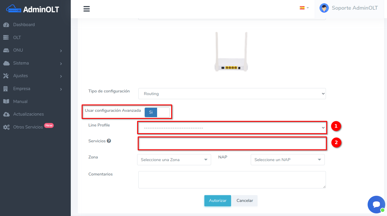 Pasos para autorizar onus utilizando configuración avanzada