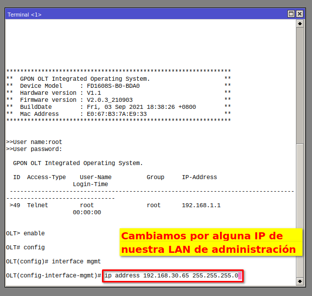 5 Configuramos la nueva IP de la OLT