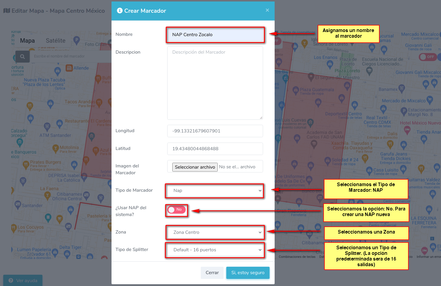 Para crear una Nap desde su mapa, podemos seguir los siguientes pasos.