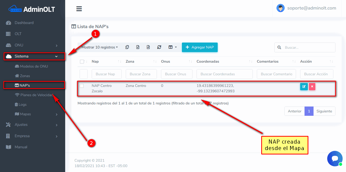 Lo podemos ver en la sección Sistema > NAP's