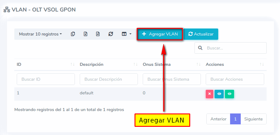 2 Después de agregar esta vlan en tu router, podremos agregarla en la OLT desde la Lista de OLT's seleccionando la OLT y la opción Lista de VLAN's.