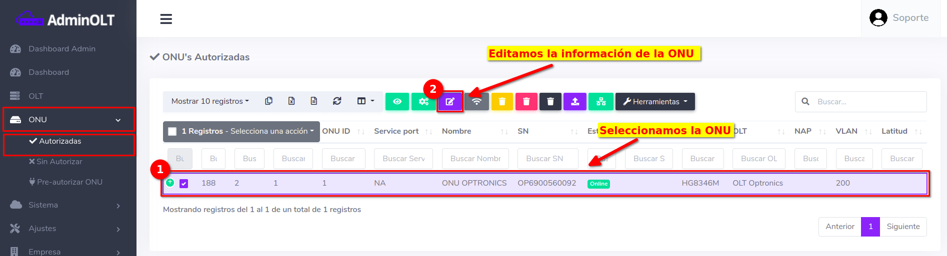 - Editar ONU en AdminOLT desde Lista de ONU's Autorizadas