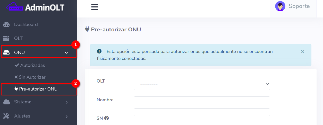 1Ingresé a Onu > Pre-autorizar Onu