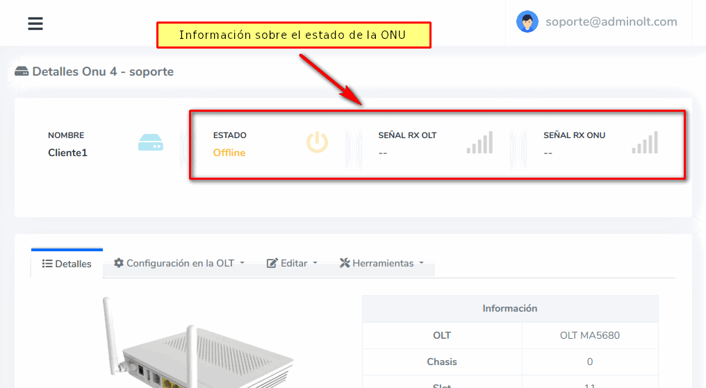 5 Una vez confirmada la acción se mandara a Reiniciar la ONU, mientras podremos ver los estados de la ONU.