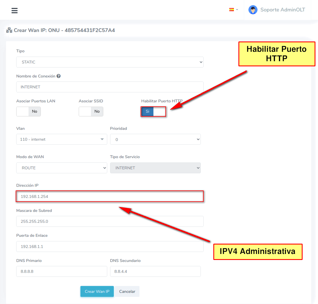 1 Crear WAN IPV4 desde AdminOLT
